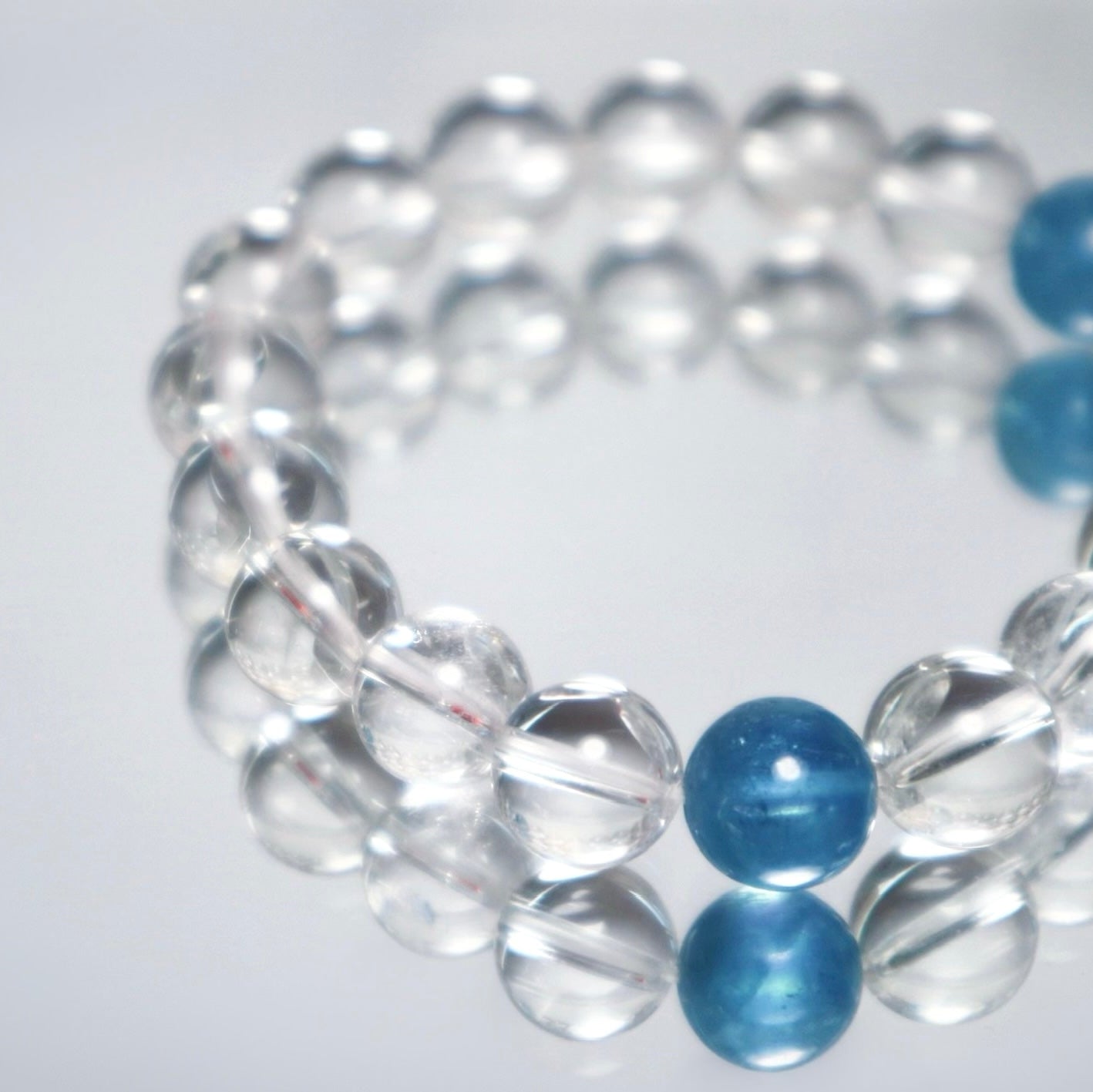 Made with aquamarine and clear quartz, 'higher being' purifies your inner tranquility.